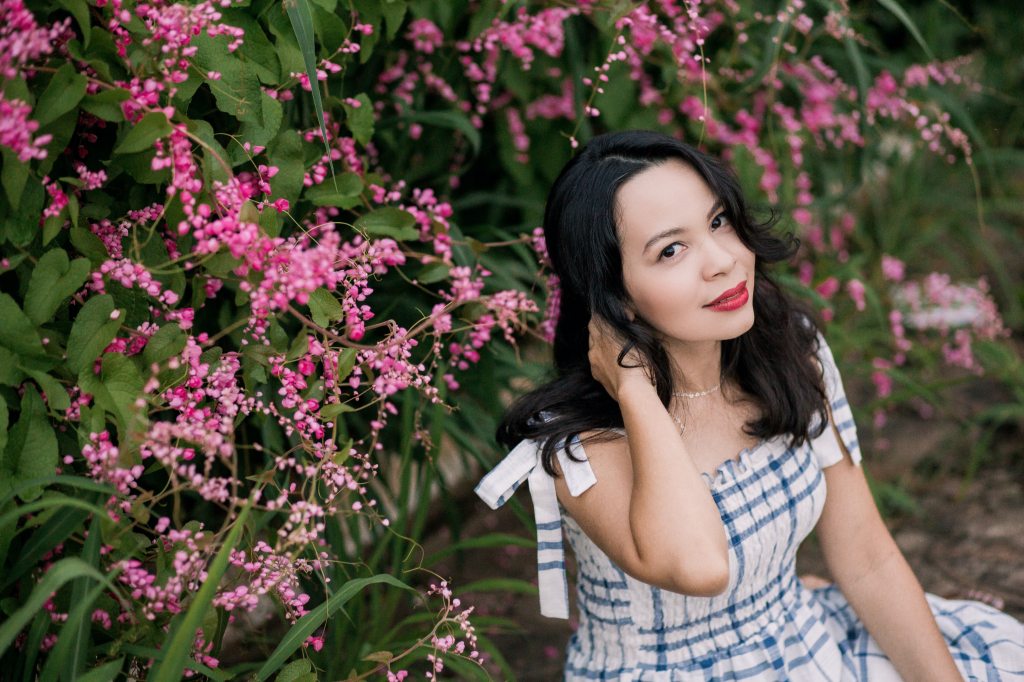 Hair: shoulder-length soot black hair | Eyes: caramel brown